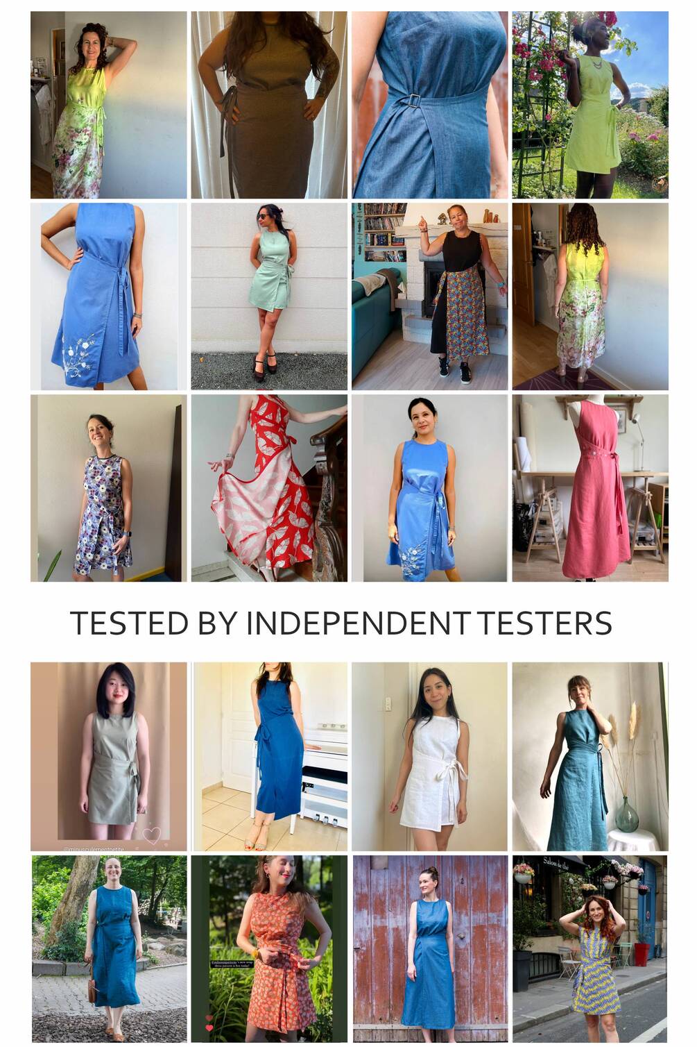 The Acacia dress is a fitted, sleeveless design that showcases a unique wrap effect at the front. The wrap panels are sewn into the sides.