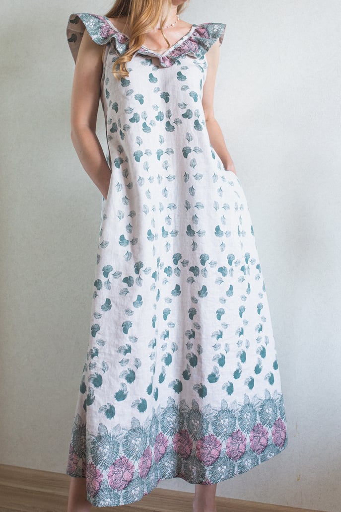 Thalassa looks great in a light to medium weight shirt or dress fabric such as linen, cotton, poplin,